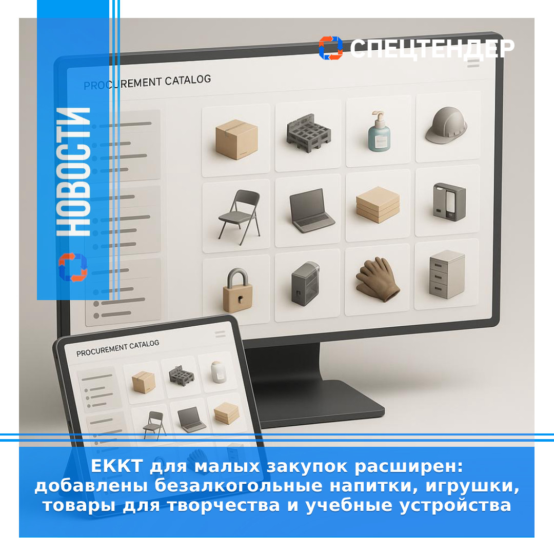 ЕККТ для малых закупок расширен: добавлены безалкогольные напитки, игрушки, товары для творчества и учебные устройства17.03.2026Правительство и Минпромторг обновили правила эксперимента по ведению единого каталога конкретных товаров (ЕККТ) для закупок малого объёма по п. 4 и 5 ч. 1 ст. 93 Закона № 44‑ФЗ. Каталог пополнен новыми категориями, а методика его применения уточнена.Распоряжением Правительства РФ от 13.03.2026 № 496‑р в перечень включены безалкогольные напитки, игры и игрушки, товары для творчества и учебные устройства -