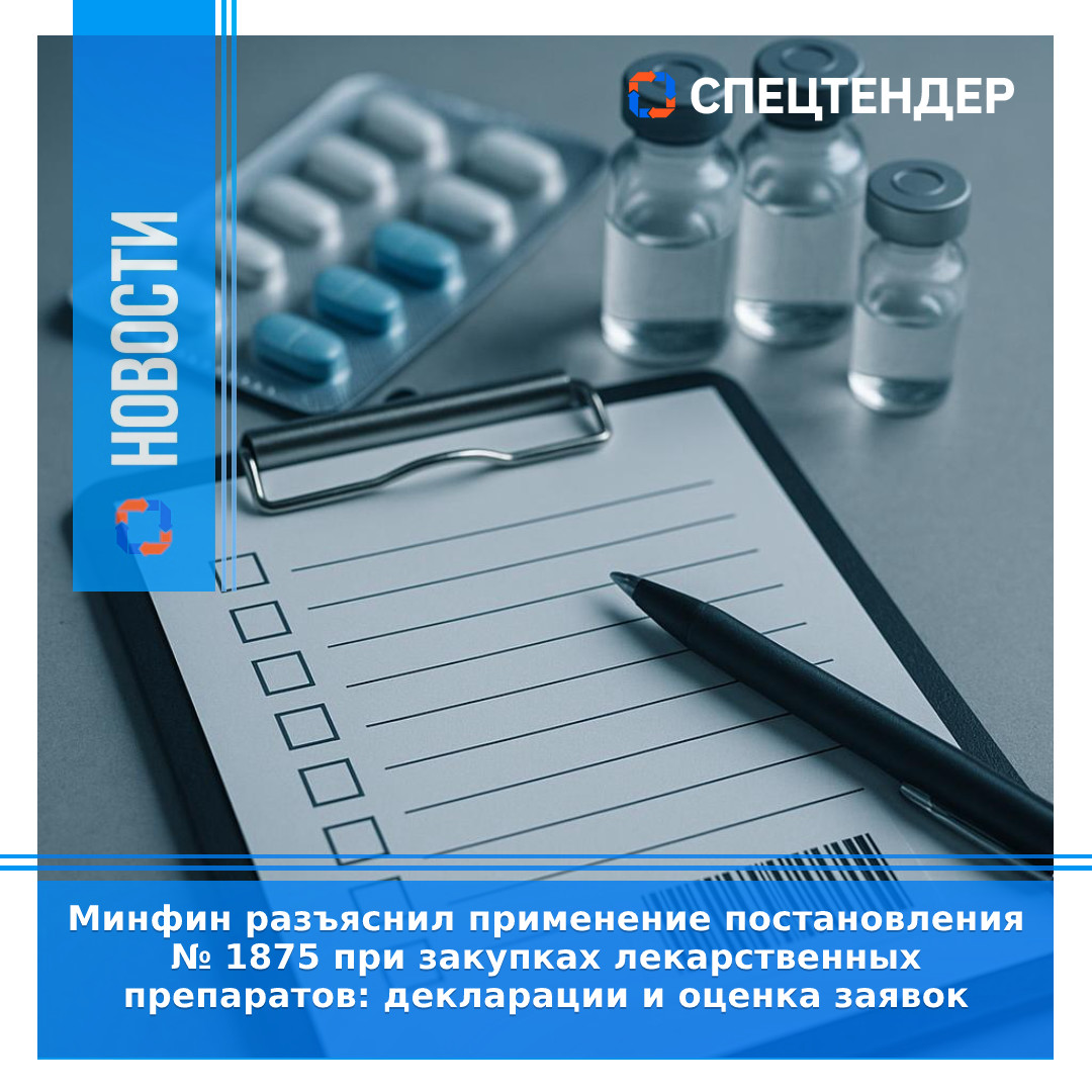 Минфин разъяснил применение постановления № 1875 при закупках лекарственных препаратов: декларации и оценка заявок17.03.2026Минфин уточнил порядок применения постановления Правительства РФ № 1875 при закупках лекарств: когда требуется декларация об отсутствии товара в реестре российской промышленной продукции (РРПП) и как оценивать заявки с реестровыми номерами и сертификатом СТ‑1.Если заказчик указывает несколько эквивалентных лекарственных форм или дозировок, декларация об отсутствии товара в РРПП нужна только тогда, когда в реестре отсутствуют все варианты, удовлетворяющие требованиям закупки -